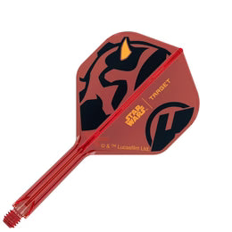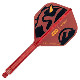 Embracing the dark side of design with the Star Wars™ | Target Darts Darth Maul K-Flex Integrated Flights and Shafts, created in collaboration with The Walt Disney Company. Styled in striking red and black with golden horn accents, these K-Flex shafts capture the fearsome look of the legendary Sith apprentice.